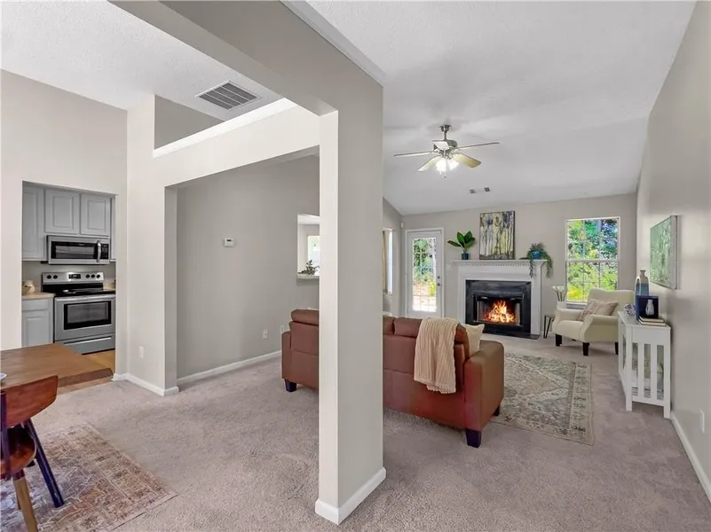 This charming ranch home is tucked inside a highly sought-after McDonough swim/tennis community, offering both comfort and convenience. Inside, you’ll find a spacious open-concept family room with a cozy fireplace, a bright kitchen with abundant cabinet and counter space, and a separate breakfast area perfect for casual dining.