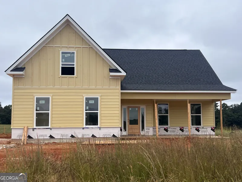 Stunning Master on Main plan by Meredith Homes Inc. The elegant 2672 plan checks all the boxes for the home of your dreams. The open floor plan makes entertaining a dream keeping the host in the middle of all the activity while prepping a delicious meal. French doors off the dining area allow for additional entertaining on the covered porch! The Primary Suite is located on the main floor and is a quiet space after a long day. Upstairs is HUGE! With 3 additional bedrooms and a flex room, you have an office, game room or additional bedroom if needed. This beautiful home features a tiled backsplash and quartz countertop in the kitchen, tiled shower in the primary suite, LVP flooring in common areas, carpet in bedrooms, designer focal fireplace and peaceful living with no HOA!