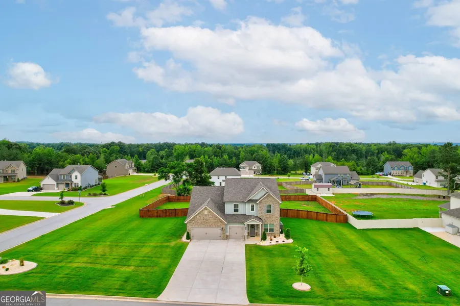 4.875% Interest Rate available for qualified VA buyers for a limited time! USDA ELIGIBLE! Are you looking for a home with at least an acre, a master suite on the main level, a corner lot, a media/bonus room, a loft, a covered patio, a 3-car garage, and nearly 4,000 sqft, all just minutes away from McDonough? If so, welcome home! As you step inside, you'll be greeted by a two-story foyer and a formal dining room that create an elegant and impressive first impression. The open-concept design features a gourmet kitchen with granite countertops, stainless steel appliances, a double oven, a large island, and a walk-in pantry. Just off the pantry, a charming coffee/beverage nook adds a touch of luxury and everyday convenience. The owner's suite is located on the main level, providing a true retreat with a spa-like en-suite bath, a soaking tub, a tiled shower, separate dual vanities, and an oversized walk-in closet. Upstairs, you'll find a versatile loft/flex space perfect for a home office, playroom, or lounge area, along with a separate media or bonus room ideal for movie nights, gaming, or a home gym. The upper level also includes three additional bedrooms and two full bathrooms, including a Jack and Jill. Outside, a fenced and level backyard offers ample space for play or entertaining, while the 3-car garage provides plenty of room for vehicles, storage, or a workshop setup. Please note that the property line extends beyond the fence; the seller fenced the home before clearing the remainder of the lot. Lastly, this home is conveniently located just minutes from I-75, Tanger Outlets, shopping, and dining, delivering a perfect blend of space, style, and convenience.