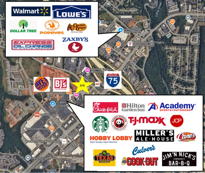 Sales Price: $1,590,000 Lot Size: 1.01 ac site Property Usage: Commercial Traffic Count: ~22,400 Vehicles per Day on Watson Blvd and ~119,000 Vehicles per Day on I-75 I-75 Access: ~0.2 miles from I-75 Access: One curb cut and easement to the hotel beside the property Utilities: All public utilities are available to site Neighbors: Walmart, Lowe's, Hobby Lobby, TJ Maxx, Dollar Tree, Chick-Fil-A, Starbucks, JC Penny's, Hilton Garden Inn, Panda Express, CookOut, Academy Sports, Texas Roadhouse, Miller's Ale House, Culver's, Dave & Buster's, BJ's Wholesale and many more!