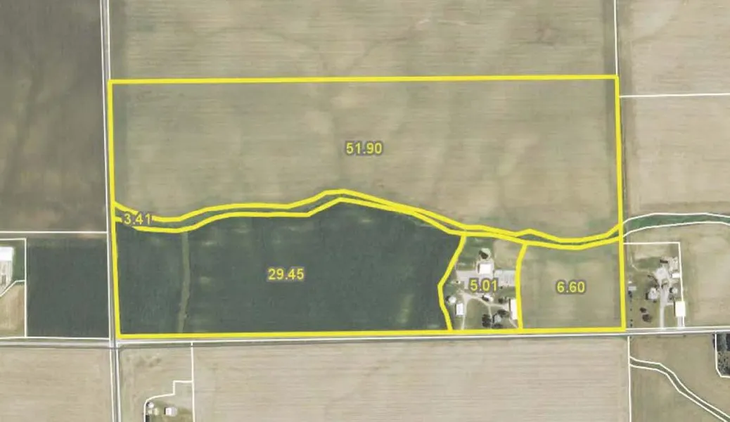 3 BR House, 36' diameter grain bin, three machine sheds, pole barn, silo, hog barn and concrete manure pit (See brochure for additional photos)
