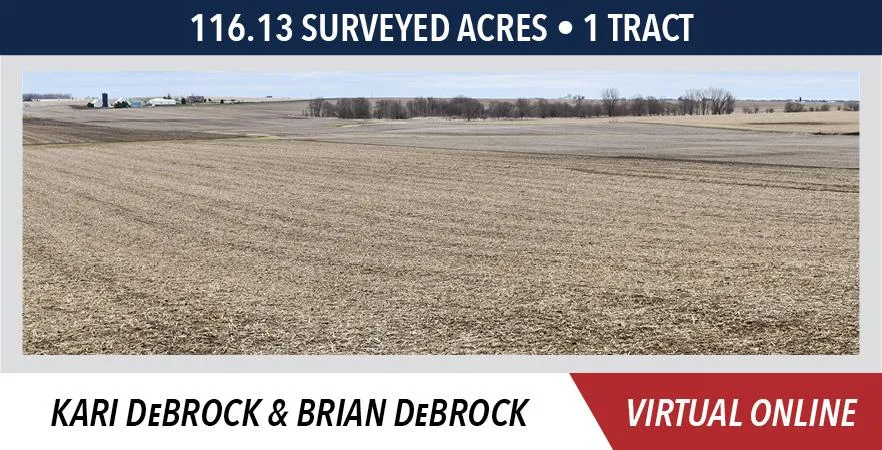 The DeBrock Farm is located approximately 5 miles southwest of Atkinson, IL and is further described as being located in Section 20, T16NR4E, Cornwell Township, Henry County, Illinois. The farm represents productive tillable cropland with a PI rating of 134.7 (Class A!).