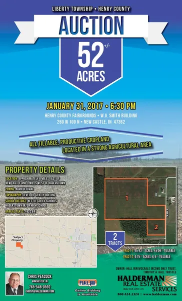 Auction Location: W.G. Smith Building at the Henry County Fairgrounds: 260 W. 100 N., New Castle, IN 47362