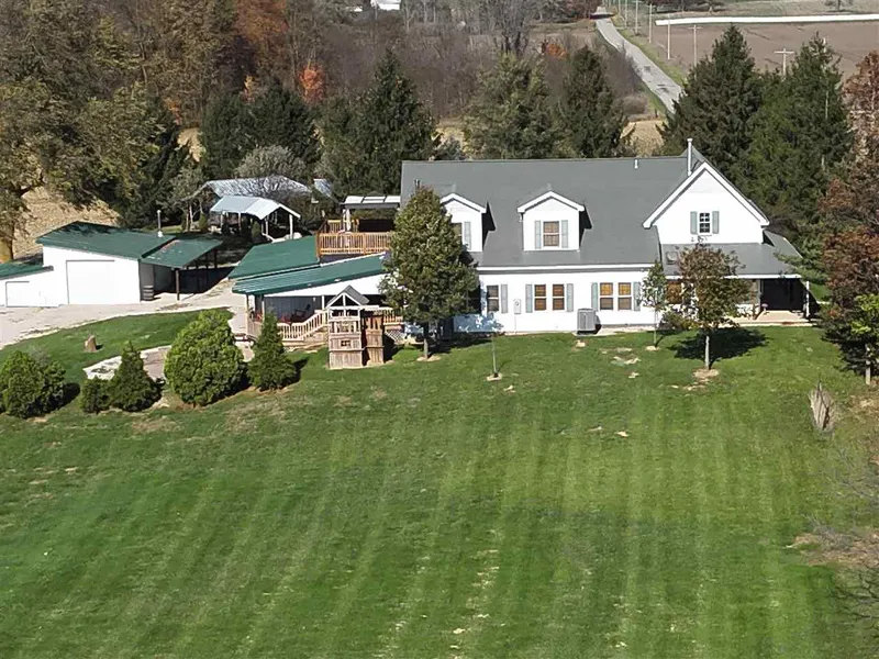 Discover this exquisite country estate resting on more than 2 acres of picturesque land. The journey begins in the spacious chef's kitchen, featuring an abundance of counter and cabinet space, vaulted ceilings, two dishwashers, a double oven, dual sinks, and a professional range hood. The large living room boasts a wood stove, ensuring a cozy and inviting atmosphere for family and guests. As you ascend to the upper level, you'll find a grand master bedroom equipped with a luxurious jacuzzi tub and a walk-in shower. Additionally, there's a family room on the upper floor that overlooks the kitchen area. The four ample-sized bedrooms each offer superb storage space for your convenience. Step outside to the large second-floor deck, where you can unwind in the hot tub within the privacy of a charming gazebo. The first-floor deck offers and area for entertaining around the outdoor fire pit. Car enthusiasts will delight in the numerous garage spaces, including four garages and a dedicated boat garage. Furthermore, the property features a barn with a wood stove, a new garage door, and an attached chicken coop. The garden area is a true oasis, featuring eight apple trees, a peach tree, an herb and vegetable garden, a majestic willow tree, and a myriad of delights for avid gardeners. Completing this enchanting property is a greenhouse ideal for your garden. Further enhancements comprise a cutting-edge heating and air conditioning system, a brand-new water heater, and a recently installed septic system. Additionally, an iron filter has been added to improve the well water quality, and the water softener system is included with the home. The residence is adorned with newer Pella windows throughout, updated plumbing, and a comprehensive interior overhaul. It boasts superior insulation and updated wiring. The state-of-the-art modulating furnace operates efficiently with a heat pump, harnessing both gas and electric. Call Alan Stamper for more information at 765-994-8822