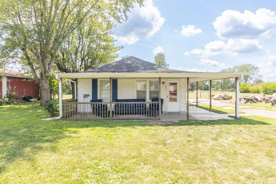 Great location on the edge of small town. Single level 2 bedroom home on 2 acres, separate laundry room, with pole barn. Many updates. Wrap around porch. Laminate and HVAC are newer. Pole barn has electricity and an enclosed room. Possession is negotiable .