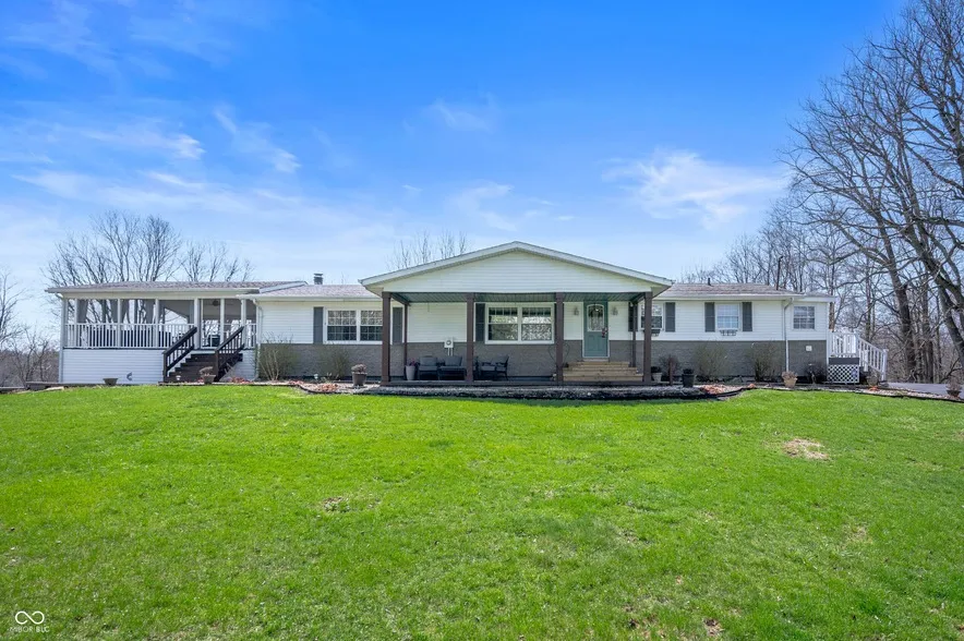 Site-Built in 1958 (not modular or manufactured), this ranch home is situated on 5.33 acres in a beautiful country setting overlooking the Knightstown Lake. A large covered front porch welcomes you into this ranch style home. It features 3 bedrooms, 2 full bathrooms, main floor laundry, and open-concept kitchen with appliances included. The dining room flows into a spacious living room featuring a wood burning fireplace. The lower level offers a multi-purpose room, ample storage rooms, and 2 garages with work space. This home was designed for outdoor entertaining. It offers a hot tub, an above ground pool with spacious deck space, and two screened-in porches with views of the Knightstown Lake. The property features a well manicured yard, mature trees, and a wrap-around asphalt driveway. Property will be sold with an as-is addendum in place. Two parcels: 33-16-25-000-108.000-024, 33-16-25-000-109.000-024.