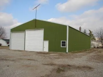 Pacemaker 45'x90'x14' clear span pole building with insulated sidewalls and ceiling. The building has gas heat and a woodburner, 3 overhead doors, 10'x12' office and bathroom. Concrete floor and situated on a large corner lot.