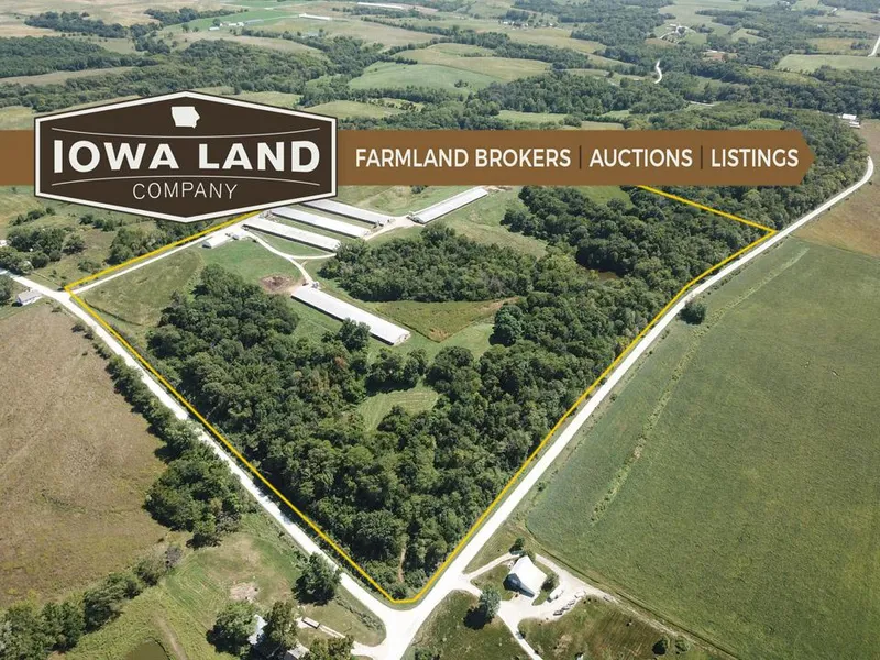 These 75 +/- acres located just 1.75 miles west of Wayland, Iowa consist of approximately 35 +/- acres of timber, 23 +/- acres of livestock yard, and 17 +/- acres of tillable with a CSR2 of 62.8. This a great opportunity to start or add to a livestock operation just a few miles from town. The farm is being operated as a turkey farm but has many possibilities for future endeavors. There are 5 62405 broiler houses built from 1978 to 1986. A 2424 machine building and a 4070 hoop house built in 2007. There is natural gas, rural water, solar panels and a rock driveway. This property could be transitioned to cow production with little changes. There is an 1850 cemetery on site as well as a pond and plenty of wildlife including deer and turkey on the farm.