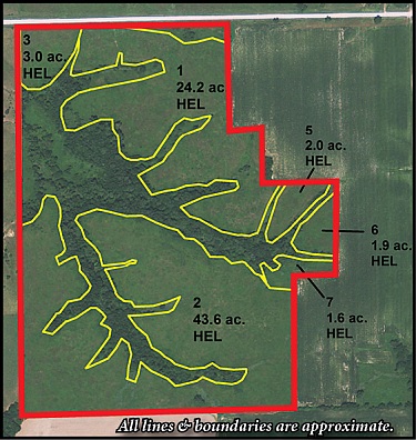 FSA information: 76.3 acres tillable of which is in CRP as follows: