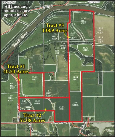 Land is located 1 mile north of Rome, Iowa. Or from Mt. Pleasant, from the intersection of Old Highway 34 & Franklin Avenue/W55, proceed 3 miles west.