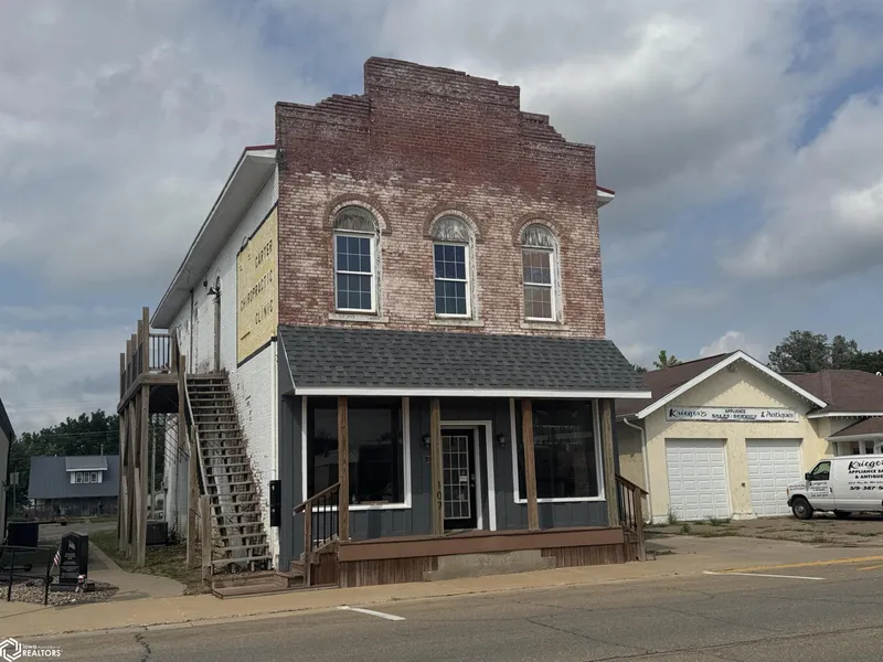 Prime Commercial + Residential Opportunity on Main Street! This beautifully remodeled storefront offers versatile retail or office space with exposed brick walls, soaring ceilings, modern lighting, a kitchenette, and restroomblending rustic charm with contemporary style. Perfectly located next door to the public library, the property also includes an updated upstairs 2-bedroom, 1-bath apartment with brand-new replacement windows, laundry room, and forced-air heating with central air. With a full basement, newer metal roof, and both front and rear parking, this turnkey property is an ideal investment in the heart of town!