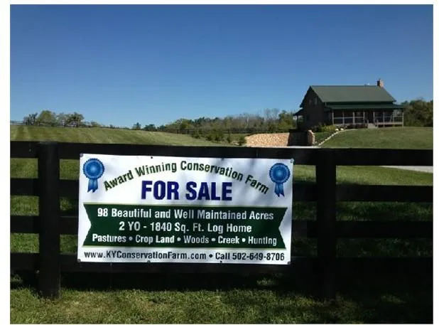 REAL ESTATE: Sherwood Acres Farm is located in Henry County just 25-30 northeast of Louisville, Ky. This meticulously well-maintained farm features: 98+ acres of which 30+/- acres are crop land, 30+/- acres of rolling pasture/open land that are fenced by four-board black fence and remainder in woods, 2000+/- of Hwy 157 road frontage, & three separate entrances. Improvements include: like new 2013 custom built 3BR/2BA log home with attached garage & 60x60 barn. This farm has been built with keeping conservation in mind, improvements include: livestock watering systems, livestock feeding pads, alley way systems between pastures, split fields grazing plans, & easy livestock handling layouts. This property is also well suited for recreation & hunting with a large selection of deer, turkey, & rabbits!