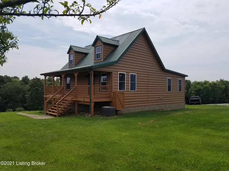 Perfect get a way! Run away to this 5 acre property in the middle of rolling farm land and lake view. Log home look without the maintenance using steel siding, this owner thought of everything down to the wood boiler, water heat backing up the central heating system. Beautiful knotty pine walls and ceiling with some oak floors, vaulted beamed ceiling and updated kitchen with white-washed maple cabinets and quartz countertops. Pull out windows all updated with warranty, some new carpet.Finished lower level has 2 offices with closets and full bath. Also a 60 x 24 garage with concrete floor, 3 pull down doors and workshop. Huge crawl space for tons of storage. Large front porch and side deck for watching the deer!