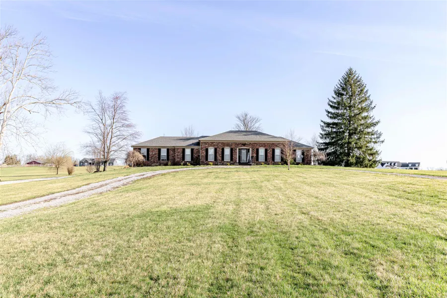 This is everything you've been waiting for! The perfect place to raise a family! Peaceful country living, conveniently located 12 miles from Interstate 71. This beautiful brick ranch features the perfect floor plan. The kitchen is seamlessly connected to the Family Room, Dining Room and Living Room. This layout is great for family gatherings, holidays and birthdays. The Main Floor hosts a spacious Primary Bedroom, ensuite with a walk-in closet, two additional bedrooms and additional full bath. New hardwood flooring and brand name appliances in 2019, new Living Room carpet in 2022 and new flooring in the guest bedroom in 2022. The walk up basement is the ideal place to watch the game and is an entertainers dream. The basement space has a living area, fireplace, billiard with a bar and tons of room for storage. Kick off your shoes and walk outside to your backyard oasis! An Eastern facing ...