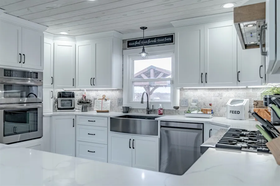 Completely remodeled all brick ranch w/ over 4000 sq ft of total living space. The gourmet kitchen is EVERY chef's dream and could easily be featured in a magazine, along w/ the Great Rm, Half Bath & Laundry Rm are hand honed hickory flooring. The front entry, home office & hallway all feature beautiful hardwood as well. The spacious owner's suite, 2 additional BRs and Jack & Jill BA are all located on the main floor, as is the 2+ car garage. The beautifully stained hardwood stairs lead you to the finished living space where you will find another ENTIRE house. The basement features a living room with floor to ceiling brick FP, just like the upstairs Great Rm. A full kitchen equipped with stainless appliances, butcher block countertops, undermount sink, and exterior door. The Man Cave/ Theatre Rm will hold ANY size TV your heart desires, with ample space for seating of your choice. Next is the homes 3rd full BA, complete with urinal, conveniently located just off the "man cave". The 2 BONUS Rooms, both feature closets and could be used as the 4th & 5th BRs. The mechanical room features a battery backed sump pump, central vacuum system w/ wall outlets for hose attachments, as well as 3 automatic dustpan outlets located in the upstairs kitchen, Great Rm, & bsmt LV Rm. The large Storage Rm hosts plenty of wall mounted shelving as well as the HVAC unit for easy maintenance and adequate air flow. The entire basement features dimmable can lights, ample storage and the security of a safe space during potential threat of severe weather. All this, a "She shed" & circular driveway are all situated on a beautifully landscaped 2-acre lot in the country, perfectly positioned to watch the sun rise & set, while relaxing on an expansive back patio, under the pergola. Sound too good to be true, see for yourself why this home is priced to sell under the appraised value! Hurry... it won't last long!