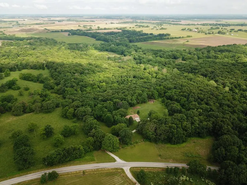 The yard area has a parklike feel with a garden, tool shed, maintained landscaping, strawberry bushes, and wild blackberries. A trail system branches out of two different locations in the yard, leading to the balance of the property. Gently sloping hardwood timber ridges including hickory, oak, and walnut provide travel corridors for the thriving deer and turkey populations. Several drainages converge in the bottom before leading out to the series of four bottom fields. The largest field is approximately 10 acres, about half of which has been allowed to grow up in immature saplings and early successional plants for cover. The approximately 6 acre field has a tremendous stand of clover, providing browse for the wildlife. The smaller open areas could very easily be converted into food plots with excellent locations.