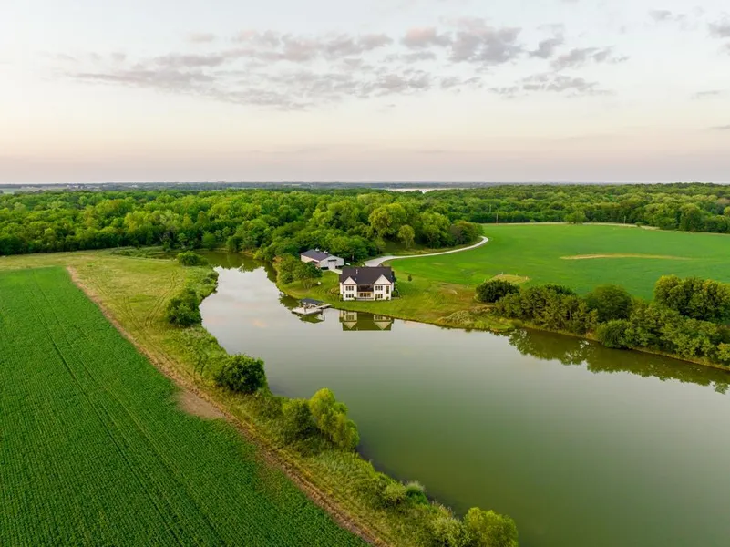 Located just south of Montrose Lake in Montrose, Missouri lies this beautiful 165 +/- acres with a stunning custom home and a large outbuilding. The 3,600 square-foot reverse ranch home is tucked in the center of the acreage, overlooking beautiful 5-acre and 4.9-acre stocked lakes and the surrounding countryside. The home was strategically positioned looking southwest to provide absolutely breathtaking views of the 2 lakes and memorable sunsets. The home was built in 2020 and features 4 total bedrooms with 2 on the main level, 2 bedrooms downstairs, 3 full bathrooms, a high-end kitchen, and lots of great upgrades throughout. The home is open-concept and has a clean modern feel. One of my favorite features is the screened-in back porch, right off the main living area overlooking the lakes. I can only imagine the number of sunsets one will take in from this spot over the years to come.
