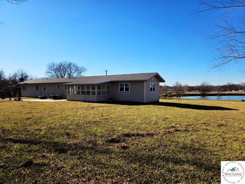 Welcome to this beautiful ranch style home located on 9.2+/- serene acres, providing plenty of room for a homestead! Outside you will find three buildings, all with electric, including a three car detached shop, a chicken coop, large pond, and fully fenced pasture ready for cattle. The home is entered through an enclosed porch that leads to a spacious living area with beautifully finished hardwood floors. The kitchen is fully equipped with appliances, a pantry, and a large, butcher block island, perfect for entertaining. A convenient half bath is located at the beginning of the hall and there is a full bath down the hall. Hardwood floors continue down the hall and into two good sized bedrooms. The lower level master bedroom was finished in with new carpet and two big closets in 2023 and also has double doors leading to the outside located next to an attached garage and huge second laundry room (there is also a laundry room located off the hallway). This home combines peaceful country living with ease of access to many nearby towns. Located approximately 15 miles from Clinton, 20 miles from Whiteman AFB, and 30 miles from Sedalia. Don't miss out on this rare opportunity!