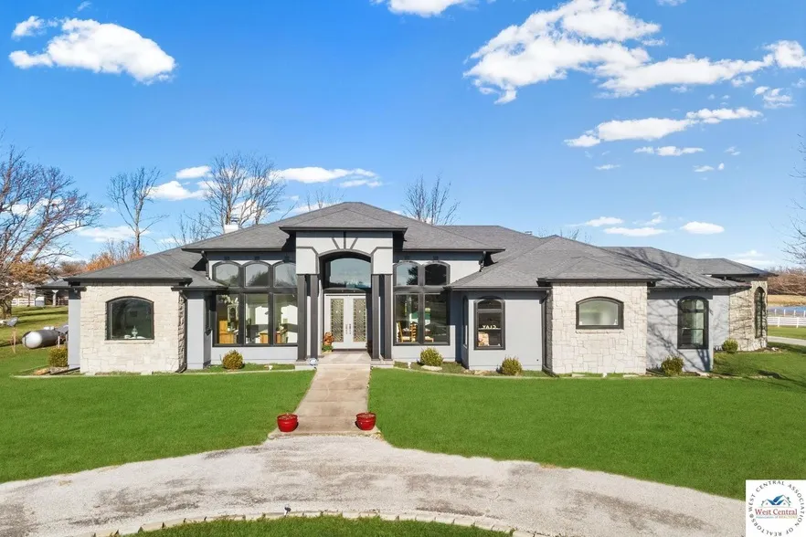 Perfectly Operating Horse Ranch on 80 Acres (M/L) An exceptional opportunity to own a turnkey equestrian estate that seamlessly blends luxury living with premier horse facilities. The custom ranch-style residence offers 4 bedrooms and 4 full bathrooms, thoughtfully designed for comfort and elegance. Highlights include two fireplaces, a formal dining room, private office, and a fully finished basement. High-end finishes are showcased throughout with custom oak cabinetry, granite countertops, built-in gas cooktop, walk-in pantry, and a luxurious primary suite. Outdoor living is enhanced by a covered, enclosed porch, hot tub and in door fire pit, ideal for year-round enjoyment. This beautiful property has many amenities to offer, wide open spaces, no restrictions, two ponds, fenced and crossed fenced! The equestrian amenities are truly outstanding. The property features a Morton horse barn, indoor riding arena, 13 permanent stalls, 13 automatic waterers, and a 6-horse multi-speed hot walker. Outdoor riding arena, spectator stand, and much more. Additional improvements include two loafing sheds, zoned heating, and well-designed pastures with ponds and automatic waters. The home is serviced by rural water, while the automatic waterers are supplied by a deep well, ensuring reliability and efficiency. Enjoy the lighted blacktop driveway and electric gate entrance for access, and security at its finest. This rare, fully operational horse ranch is meticulously maintained and designed for serious equestrian use. A property of this caliber must be seen in person to fully appreciate everything it offers.