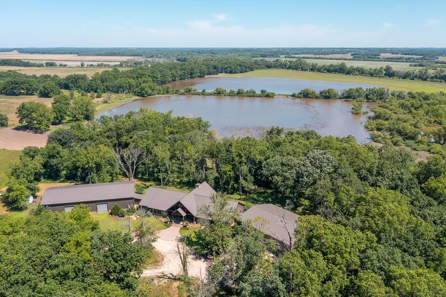 Located just 1-hour outside of Kansas City on a private gated drive, this turn-key hunting farm includes a total of 330 acres made up of 143 acres tillable, 100 acres of wetlands, 65 acres of woods and draws, and approximately 17.5 acres of ponds and flood protected hunting pools.