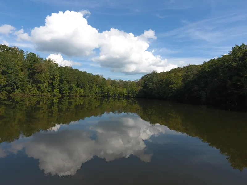 This tract has a rolling, hilly, heavily timbered landscape with a 6 acre pond and a small field. The timber is comprised of