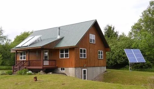 The house is in excellent condition and set up for year round or recreational use. There are 3 bedrooms; the master is a loft with a balcony overlooking the living area with a bath. The 1st floor has two bedrooms and a full bath. An open floor plan with cathedral ceiling has a spacious kitchen/dining area with lots of cabinets, convenient island, propane gas stove and refrigerator, and cozy sitting area with woodstove. The basement is partially finished, fully insulated, spacious with high ceilings. Includes three areas: one room for the mechanical systems including boiler, oil tank, washing machine, solar heated water storage tank, photovoltaic inverter and batteries; the other two areas can be used to set up a workshop, storage or additional living space. A walk out to ground level.