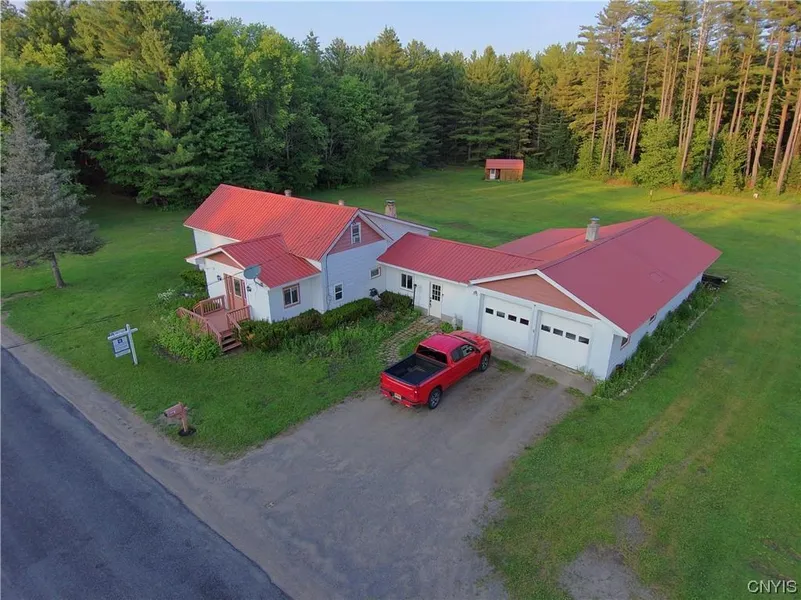 Welcome to this self sufficient homestead nestled in the serene Adirondacks. This incredible property is situated on a double 2.4 acre lot and is ready for your outdoor usage. This peaceful 2-bedroom, possibly 3-bedroom, 1-bathroom home offers a quiet retreat from the hustle and bustle of city living. Enjoy the simple pleasures of life by raising chickens, growing your own vegetables, and watching the abundant wildlife from your large deck. The full dining room provides ample space for family gatherings and entertaining guests, while the office allows for work from home convenience. The oversized attached garage is perfect for storing all your vehicles and outdoor equipment, including those needed for horse care. In the colder months, stay cozy with the additional heating source by way of a wood furnace. Come and experience the beauty of the Adirondacks and make this lovely homestead your own. The square footage may be larger than amount shown due to additions put on over the years. Easy to get to and from Utica via rte 8 & 12. House built in 1945. Living room & Bedroom above built in 1998, Kitchen & Dining room built in the 70s, the 26 x 26 extension to the garage built in 2010!