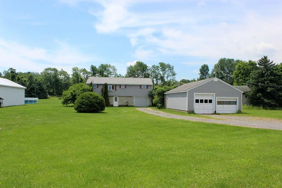 Great country location for this Ranch home with 3 garages! Put your personal touches on and make it your own. Includes 3BRs, 1 full bath, kitchen w appliances and breakfast bar, dining area, LR w knotty pine.