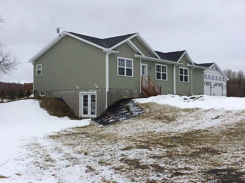 You do not want to miss out on this gorgeous 3 year old ranch! 3BRs, 2 full baths, gorgeous kitchen with breakfast bar, all appliances & dining area, living room, 1st floor laundry. Partially finished basement includes an office, partially finished family room & big walk-in closet/dressing room. Awesome garage & breezeway, siding and doors will be completed by seller, and solar panels really cut down on those utility costs. All on 5 acres in a very convenient location.