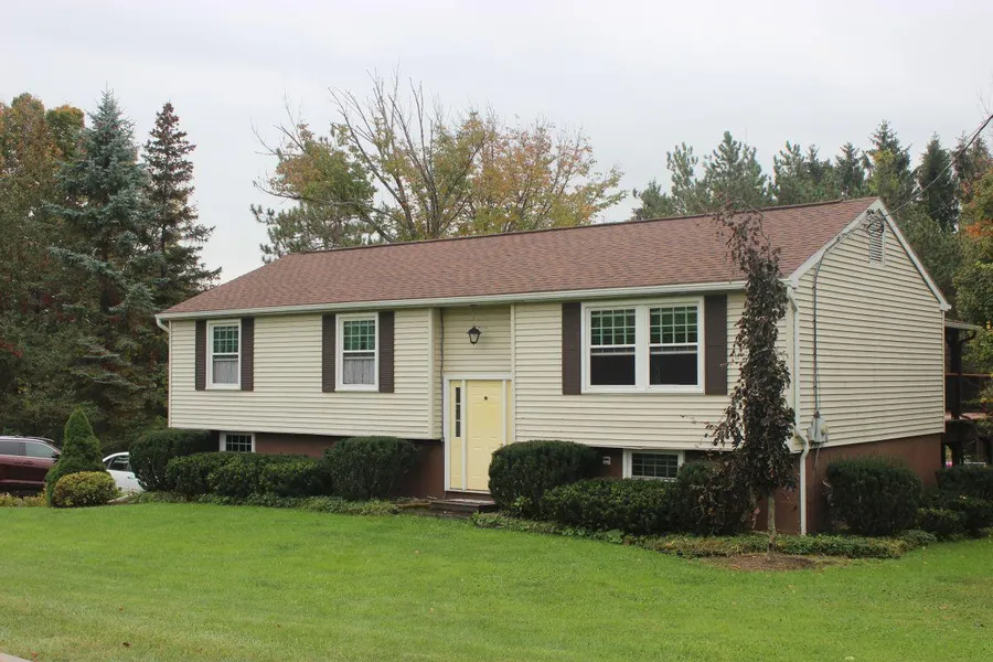 Raised Ranch home sits on 2 lots with gorgeous landscaping. House includes kitchen w breakfast bar, dining area, living room, 3BRs, 2 baths. Basement garage and laundry plus family room with gas fireplace. Yard is 2.85 acres and includes sheds, above ground pool, deck
