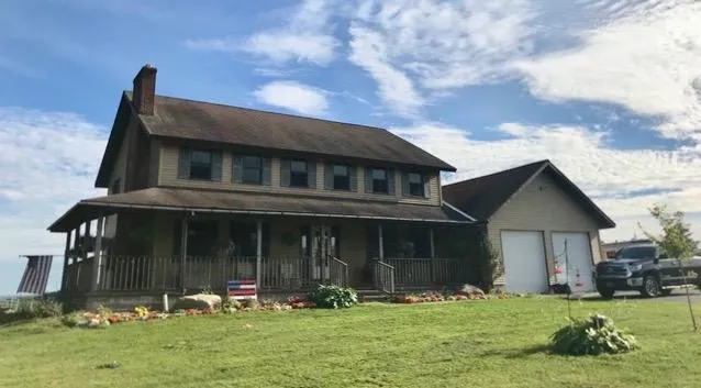 The home is pretty special; there is a lot to like here and it is exceptionally well built and in excellent condition. It features a wrap-around porch + a large deck on the south side, the side with the views. Water is from a good drilled well and there is a softener (not used, though functional) and a UV light so it will pass any inspection. The heat is oil hot air with wood backup, $2100/year with just oil, and not attempt to economize - which illustrates just how well insulated this home is. There is also a fireplace, never used in all this time. The home has 3080 ft2 of living space. Attached to it is a large garage with storage space overhead. It can hold 3 cars or, better, two with ample room for a shop.