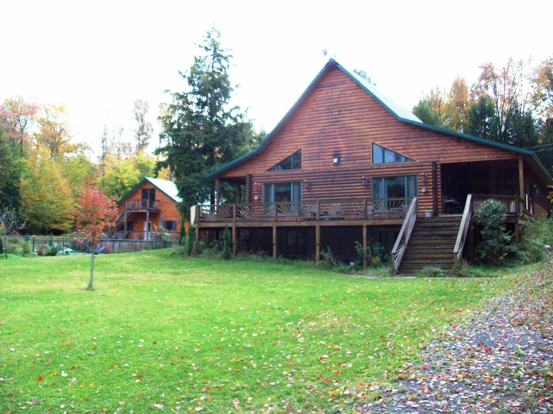 225 waterfront on 2.6 acres. Amazing space with soaring cathedral ceilings. 3-4 Bedrooms, 3 baths and 2 full kitchens. Over 3,000 square feet on 3 levels. Great room with floor to ceiling fireplace and formal dining room. Wrap around deck on 3 sides with one side screened in porch. Lower level 1 bedroom apartment with living room, kitchen and bath, and private entrance. heated pool with sundeck and oversized garage with balcony to 2nd floor loft.