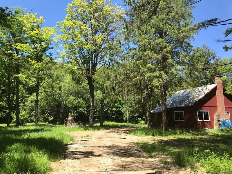 23 +/- Acres on a year round maintained road with loads of creek frontage, on the groomed snowmobile trail, just minutes from stores and more but with an abundance of seclusion and privacy at the cabin. You can fish, kayak, hunt, ATV, snowmobile, sit back and enjoy nature on the porch or balcony, or sit out by the large outdoor fireplace and enjoy the stars.