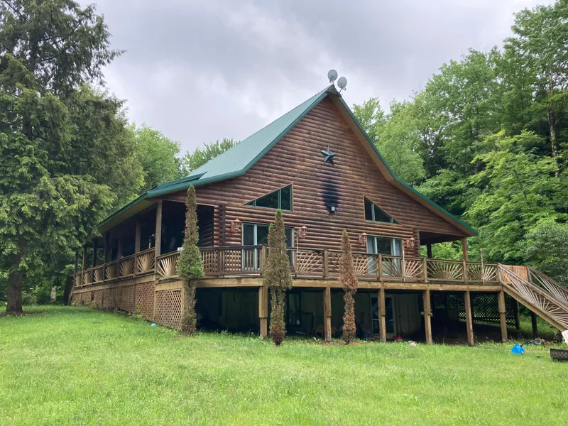 Set on 2.6 acres on the Hinckley Reservoir waterfront is a stunning 3 bedroom 2 bathroom house. Incredible stone propane fireplace in the great room with vaulted ceilings. Eat in Kitchen. Tongue and groove pine throughout.