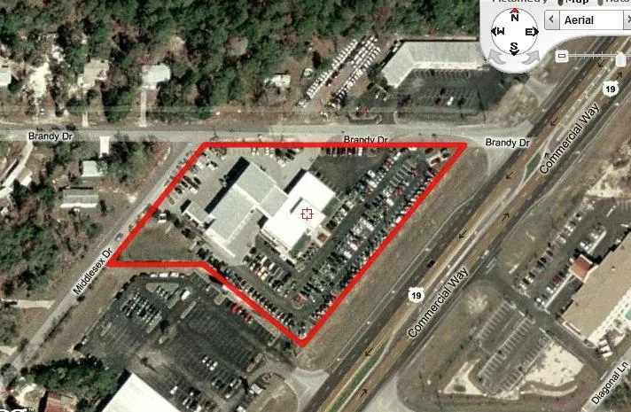 The property is a vacant Mitsubishi dealership located on the west side of Commercial Way (US 19),between Spring Hill