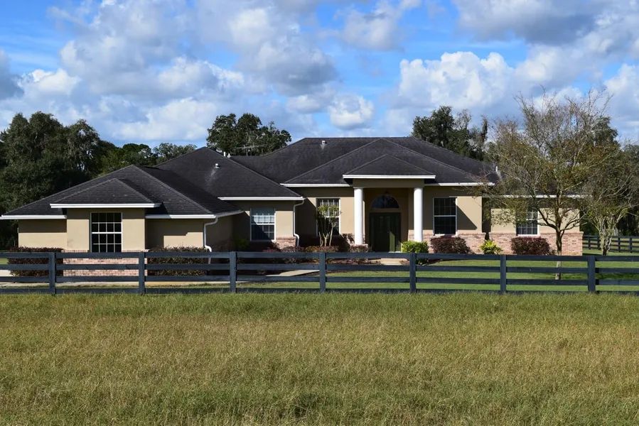 Very private 35 acres, fenced and cross fenced nestled in the rolling hills of Brooksville. This property offers top elevation at 199 feet with an incredible hill-top view. Income producing Tifton 44 hay field; lower pasture with scattered grandfather oaks & woods. If you're a wildlife enthusiast with a camera, or If you like to hunt, look no further than your own back yard. This property is bordered by large wooded parcels that provide a home to migrating Florida wildlife such as White Tail deer, Osceola Turkeys, American Bald Eagles, etc. It has its own 1 acre (approx) fishing pond that is spring fed and fully stocked with Bass and Blue Gil; Working cow pens. Solar powered gate at entry and hedge of viburnum and white crepe myrtles (approx. 1000 ft.-all irrigated) at south side of property. This would make a great family estate with the option to subdivided allowing you to build a second home for mom and dad or the kids. This owner/contractor custom built home is immaculate and move-In ready. 4 bedrooms / with office / 3.5 bathrooms / 2 screened-in porches / 3 car garage / storage space above garage (pull-down stairs); 3200 sq ft living, 4400 sq ft under roof, 10 ft. & 12 ft. ceilings. Kitchen fully upgraded with granite countertops, custom back splash, new stainless steel appliances, wood cabinets, walk-in pantry. Living area with brick wood burning fireplace and brick built-in entertainment center, french doors, ceiling fans, closet maid shelving in all closets; Hardwood Floor solid white oak/ tongue & groove at entry/foyer. Spacious laundry room with washer/dryer, laundry tub, cabinets and hanging rod. Beautiful pool (pool bath w/ outside shower) surrounded by a paver deck; 2 HVAC systems for home- 2 ton and a 4 ton. 250 ft deep well, new well tank/pressure switch and capacitor providing excellent water quality, Spacious barns with over 6,000 sq ft (56x72), (17x72), (24x28) all heavy post & beam construction. No HOA. Zoned Agricultural, bring the horses and livestock.