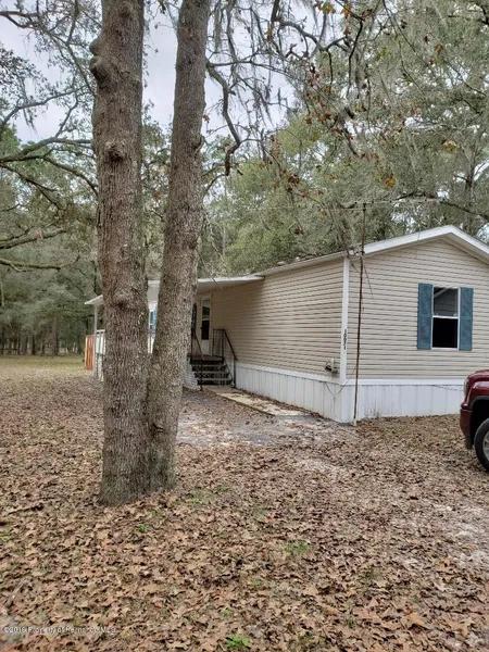 1/2 acre mol with fencing on 3 sides. Beautiful mature shade trees, nicely scattered thru-out yard. Home has brand new roof, carpeting, paint and vinyl flooring, in addition to newly finished tubs, shower and countertops. Endless opportunities for the little outbldg! 'She-Shed'? 'Man-cave'? Workshop? Teen-studio? Lots of deer & nature close to State Forest. Good Neighbor Bike Trail is approximately 1 miles south. Ride your bicycle to Brooksville, Dade City or Dunnellon or just take nice long walks. Rare find at this price in this area. Would make great get-away retreat from the big city!