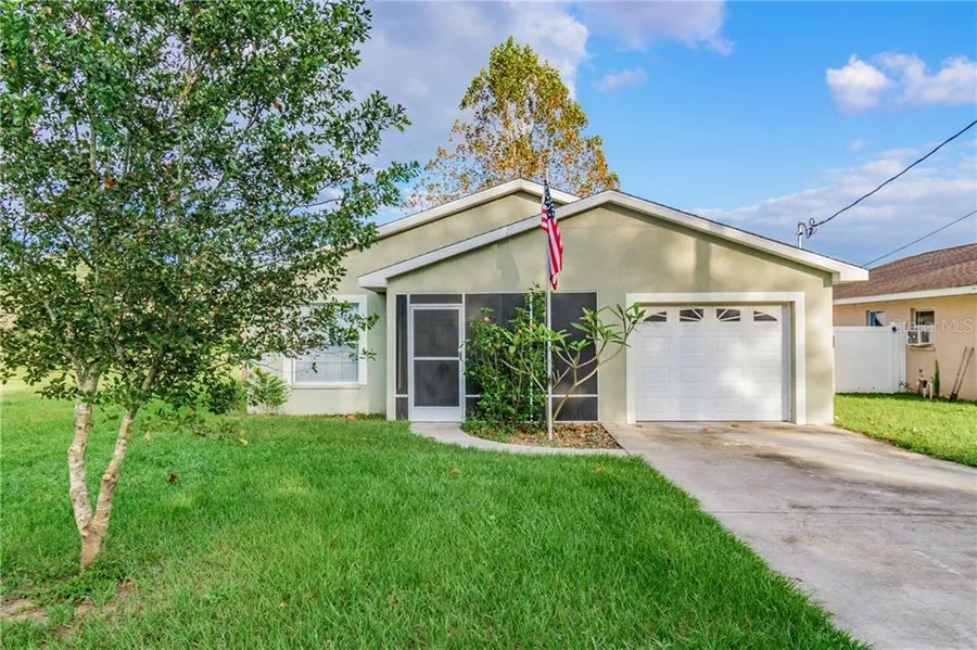 Country feel in a colorful community setting! This adorable home boasts a 3/2 open floor plan with a converted garage to include an inside laundry room PLUS extra den/office space. Garage easily convert-able back to traditional use if desired. Land behind home purchased and combined prior, to now include a HUGE oversized LOT for endless outdoor opportunities! Add a pool, a fire pit, a playground, a work space, or park your RV/boat right in your backyard! Fully fenced for privacy and comfort, but also easily accessible. Backyard also includes 12x16 shed with electricity! Home has been well kept, plus NEW AC in 2019! If you're looking for a great home with a huge yard that is also close to shopping, trailheads like Withlacoochee and Trilby, and the Withlacoochee River- this home is your ideal find! Easy to show... Come see the endless possibilities and warmth this home projects!