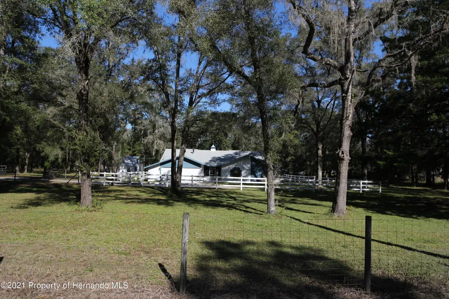 Well cared for pool home on over 4 'Park Like' acres close to Withlachoochee State Forest. Triple sliders open to brick paver back porch which extends around pool. Pool has solar heat for year round comfort. Breakfast bar in kitchen, formal dining room, Bedroom #3 has been used as an office but is easily converted back to a bedroom. Wood burning, Franklin Stove in sunken living room. Large hardwoods with lots of pasture for livestock. Multiple outbuildings including 2 stall horse barn, 24x24 (+-) block outbuilding (workshop) and carport (18x30+-) covered storage for equipment , boat or RV. Sold 'AS IS' for sellers convenience.