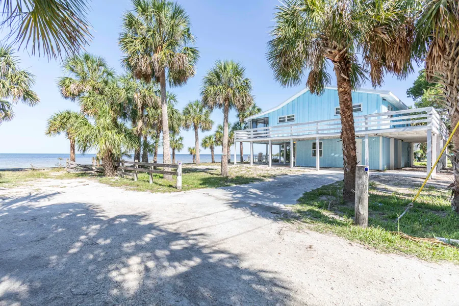 Welcome home to Pine Island! One of the last Islands offering Old Florida Charm! Sitting DIRECTLY ON THE GULF OF AMERICA, WITH 126 FEET OF WONDERFUL PRIVATE BEACH, is where you will find this charming, updated KEY WEST Style Stilted Home offering great views from all the way around it. This 2 Bedroom 2 Bath home has a lovely lower-level Game Room with picturesque beach view, which could become a Giant Primary Bedroom Suite easily, if desired, giving you a 3rd Bedroom. Newer Windows throughout. Upstairs there's a Big Eat in Kitchen with Wood Cabinets, Granite Counter Tops, Stainless Steel Appliances, Beachfront Living Room and Main Bedroom. COMPLETELY FURNISHED AND TURN-KEY READY FOR IMMEDIATE USE! There is a wonderful 34 ft long Screened Lanai upstairs offering Western direct