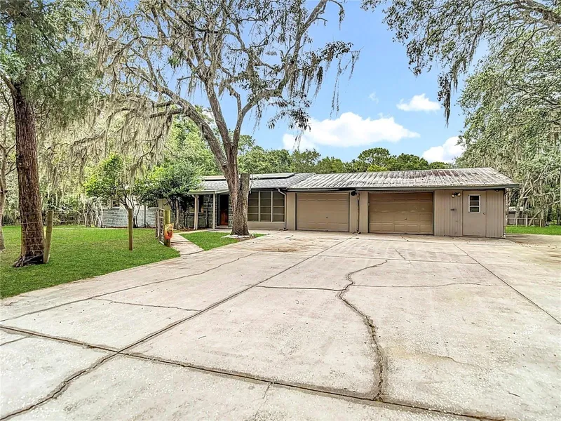 Welcome to your private slice of paradise! Nestled on 2.4 acres of peaceful, fully fenced land, this well-maintained 3-bedroom, 2-bath home offers the perfect balance of comfort, functionality, and self-sufficiency. Major upgrades completed in 2021 include a new roof, a heat pump for the A/C, and an upgraded electrical panel, offering peace of mind for years to come. Inside, you’ll find an open-concept living room and fully equipped kitchen with ample cabinetry, modern appliances, and a convenient breakfast bar—perfect for casual dining or entertaining. A hidden door in the living room leads to a spacious bonus room ideal for an office, playroom, or guest space. Step into the large screened-in Florida room to relax and enjoy serene backyard views. Energy efficiency is a bonus with solar panels keeping the average electric bill at just $58/month. The oversized 2-car garage with pull-through access is perfect for trailers, boats, or a workshop, and an attached utility garage offers additional space for lawn equipment or projects. Gardening enthusiasts will love the climate-controlled greenhouse with its own electric panel, also on the outside is a 50amp RV hookup. Two additional storage sheds provide even more space for tools and equipment. Located 10 minutes from I-75. With no HOA, room to expand, and a firehouse just down the street for peace of mind, this unique Brooksville property is perfect for those seeking a peaceful retreat, hobby farm, or homestead haven.