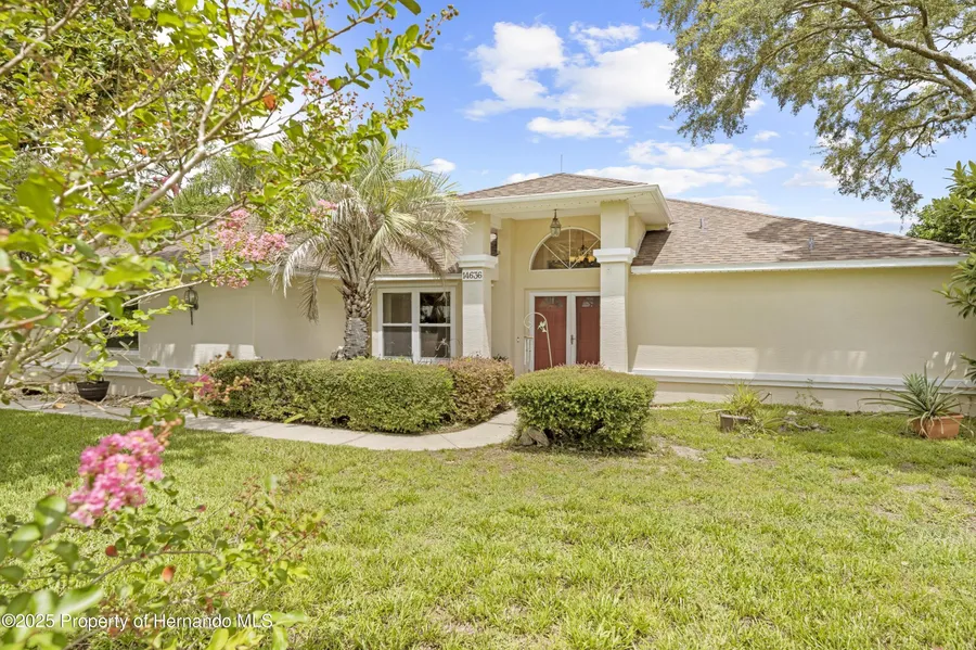 Welcome to this well-favored pool home in the premier community of East Linden Estates located in Spring Hill, FL. Property features 3 bedrooms plus den with fireplace, 2 baths and 2 car garage. Lots of room for a growing family. The owner recently had new windows installed with hurricane shutters on front of the home. Roof was replaced in 2019 and HVAC was replaced in 2020. Master Bedroom has a sliding door to walk out to your pool area. Master Bath includes a walk-in-closet, double vanity, garden tub and separate shower. Extra-large inside laundry room has a deep sink and window which brings in natural light. Homeowners Association dues of 160 dollars is one of the lowest in the county and NO CDD fees. High and dry on a 1/2 acre with a fenced in back yard perfect for you and your dog family. No worries, as this home is located in X flood zone. Irrigation supplied by a well which will help keep your water bill down. All appliances are included with the home, so no need to purchase new ones. This home is close to restaurants, shopping and the Suncoast Parkway for easy access to Tampa and other surrounding areas. Schedule your showing today and make this your new home.