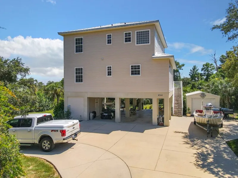 High and Dry! This custom 3 story stilt home is located in historic Bayport, Florida. It was