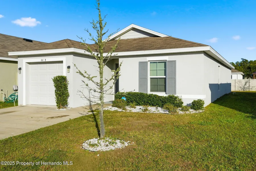 Welcome to this charming, move-in-ready 4-bedroom, 2-bath, 2-car garage home with over 1,400 sq ft of comfortable living space, nestled in one of Brooksville's most adorable gated communities. Built in 2020, this home offers modern features, a smart layout, and low-maintenance living in a location that keeps you close to everything. Enjoy peace of mind and convenience with county water and sewer, a brand-new community gate, and a low HOA of approximately 90/monthly. The mailbox is located right next door, adding an extra touch of everyday ease. Best of all, the home is not located in a flood zone. Perfectly positioned, you're within walking distance to Walmart, roughly 5 minutes to Tampa General Hospital (Brooksville), close to downtown Brooksville, and just minutes from the Suncoast Parkway for a smooth commute and quick access to major amenities. Seller is offering a paint allowance wi...