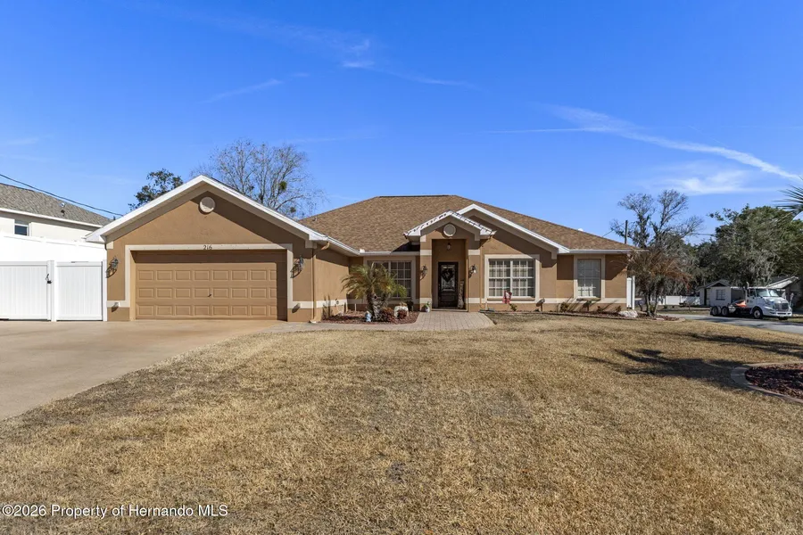 Stunning Custom Designed & Built 4/2/2+ Pool Home on a corner lot with Over 3,200 square feet of living space with upgraded extras including a new roof, fencing, added driveway, pavers, enlarged screened in back porch with Dual Oversized Sheds for Storage and your Custom Workshop ready TODAY for you to call it your own!!! Enjoy Open Concept Living with a Split Floor plan with this Luxurious Designed & Impeccably Maintained home!! It is ready for you to call it your own Today. Be in Awe as you discover your Chef Designed & Inspired Kitchen... this area offers endless counter space for Cooking & Baking, Prepping & Entertaining!! With additional rooms that can be used a Media Rooms, Offices, Formal Dining, Extra Bedrooms and more, this Beauty has so much space for large families & multi-generational families to have that much need space to stretch out, have privacy & grow!! Stunning Primary Bedroom with EnSuite offers Spa Features with a 5 piece ensemble including walk in shower & garden soaker tub. Split bedroom layout offers privacy for family & guests. Oversized large Family & Living Room with formal Dining and a Breakfast Nook & Eat-In Kitchen. Inside laundry with storage takes the ''Chore'' out of doing the Laundry. Walk outside to your Private Oasis with Gigantic Screened in porch, privacy Fencing & custom lighting to that gorgeous Pool for relaxing all your cares away... Check out the Triple Sized Driveway, Custom Paver Entrance, additional Driveway on the side of the home for Boat & RV Parking as well as storage for your toys, work trucks, and entrances to your Dual Sheds for Storage, workshop, Mancave, She-Shed, Crafting Room, Playhouse and more.... The possibilities are ENDLESS!! Only a few miles to Buccaneer Bay, Weeki Wachee Springs, Pine Island, the Gulf & Canal ways, this home offers so many opportunities to go boating, fishing, hiking, kayaking, paddleboarding, and more with plenty of room to store all your toys plus close to the best Restaurants & shopping, Entertainment & Theaters, Hospitals & Medical Facilities, Wineries & Breweries and so much more. Hurry today and schedule your HOME Showing at 216 Cobblestone Dr. We promise you, you will fall in love with this Beauty!! Hurry & schedule today!!