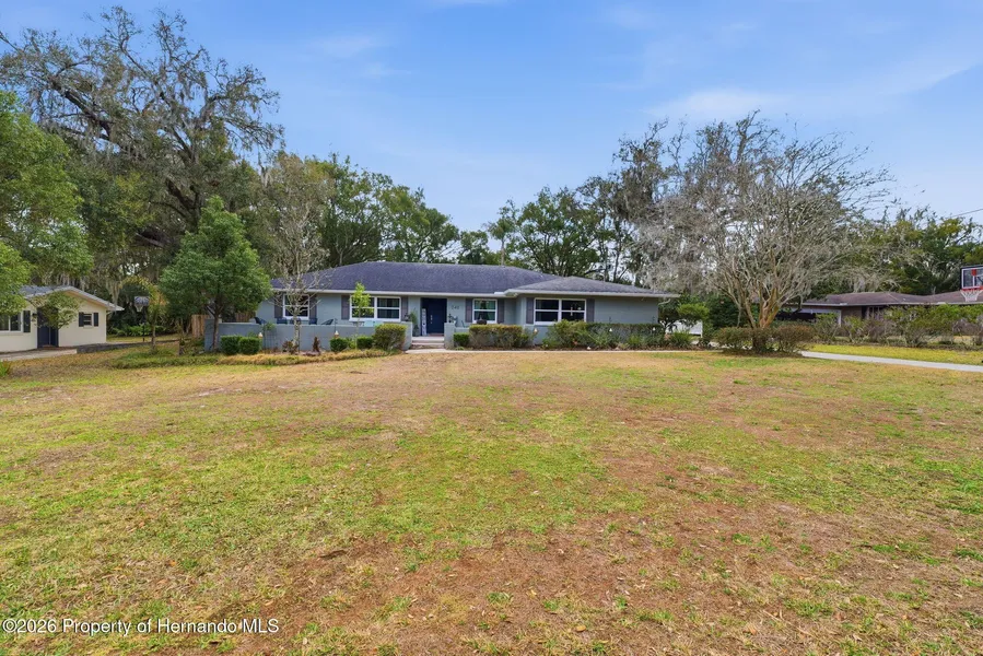 Recently updated with new double-pane, Energy Star-rated tinted windows and a fully resurfaced saltwater pool in 2025--complete with a state-of-the-art pool cleaning vacuum--plus HVAC in 2021, this one-of-a-kind 4-bedroom, 3-bath split-plan home sits on a generous half-acre lot just steps from Brooksville's charming historic district. The formal living room features real wood floors, vaulted ceilings, chair rail with picture frame molding, a striking white stone wood-burning fireplace, and French doors opening to a covered rear porch with an entire wall of customizable slat-wall storage. The chef's kitchen showcases authentic Saltillo tile floors, stainless-steel appliances, two sinks, two dishwashers, two ovens (gas and electric convection), and a 48'' professional range with six gas burners. The oversized 15-foot granite island seats 6-8 and includes its own sink, dishwasher, and abundant cabinetry, while the main wall offers butcher block counters, decorative tile to the ceiling, a white double farmhouse sink beneath a large window overlooking the backyard and pool, supersized refrigerator and freezer, dedicated coffee bar, and a floor-to-ceiling glass-door pantry with gold accents. Cabinets feature soft-close doors and drawers, pull-out shelves, and a lazy Susan. Step down to the attached family room with matching Saltillo tile, crown molding, a wood-framed glass door to the rear, a wall of windows, and extensive built-ins, while the formal dining room includes real wood floors, chair railing, crown molding, and a large front-facing window. The primary suite offers real wood floors, crown molding, chair railing, a wall-spanning front window, a walk-in closet with custom organization, and an ensuite featuring marble-like tile, cultured marble vanity with gold hardware, vintage oval mirror, and a fully tiled step-in shower with built-in bench and glass shelving. The remodeled guest bath (2020) includes crown molding and a step-in shower with bench and niche. The mudroom features matching Saltillo tile, utility sink, extra storage, washer and dryer, and side exterior access to parking. Three additional bedrooms include crown molding; two offer built-in closet systems and real wood floors. The third bath includes dual vanities, granite counters, tub/shower combo with window, vintage folding mirror with hidden storage, and gold towel hooks. Outdoors, the expansive front yard and long driveway create openness and privacy, while the elevated oversized front patio is perfect for morning coffee, gardening, and peaceful wildlife views from the wooded area across the street. The huge fenced backyard features a 10.5-foot-deep saltwater pool with light and advanced cleaning system, newly installed landscaping, extra-large firepit with string lights, hammock space, mature trees, kumquat, loquat, and banana trees, philodendrons, shampoo ginger, a climbing tree, large shed, and chicken coop with run. A buried invisible electric dog fence allows pets to roam freely while preserving the clean, open look of the front yard without visible fencing, and the front garden is supported by irrigation to keep landscaping lush. Downtown Brooksville is just 0.1-0.2 miles away; just a short stroll to the charming local shops, restaurants, community events, library, public tennis courts, playgrounds, and Hernando High School. You'll also appreciate the quick access to Tom Varn Park and the area's stunning natural springs, all just minutes from your doorstep.