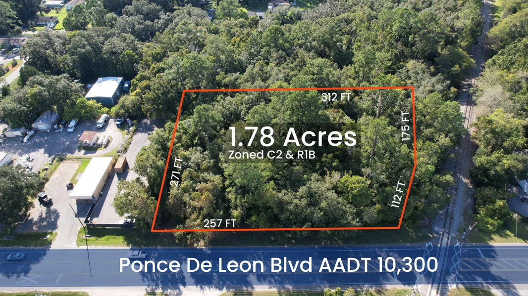 Brooksville commercial land directly on Ponce De Leon Blvd / US 98 with 257 FT of frontage. Traffic counts on Ponce De Leon are 10,000 AADT. This property has a wide variety of surrounding commercial uses and is located in an opportunity zone. This property has split zoning with the front portion being zoned C2 and the rear portion being zoned R1B. The entire property is classified as commercial on the Future Land Use map.