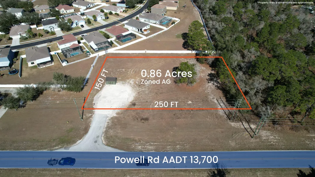 Great opportunity to build your own free standing professional office building in the Brooksville/Spring Hill area on Powell Road. This property is 37,595 SF or 0.86 Acres with 250 FT of frontage directly along Powell Rd which sees on average 13,700 vehicles each day, giving this property excellent visibility. A rezoning would be required for this use since the property is currently zoned as agricultural.