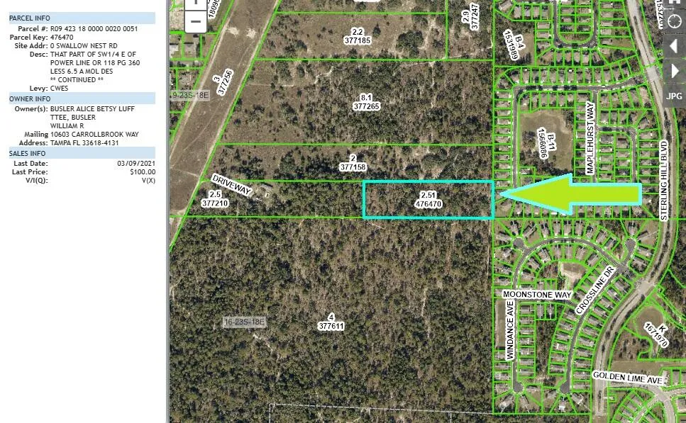 Exceptional opportunity to own a 5-acre plot north adjacent to the 280-acre Caldera Community development by Pulte Homes. The lot is located in the Spring Hills section of Hernando County. This tract has no HOA fees, is in Flood Zone X, and shows no online signs of wetlands on the property. Originally meant for peach trees, it now offers various improvement options with a neighboring home. The previous owner mentions deeded access, and Pulte Homes will grant access after their project is complete. For more details on accessing the lot before completion, reach out to the Hernando County Planning and Zoning Department. To reach Swallow Nest Road, follow these directions: From US-41/S Broad Street, turn right on Powell Road. Drive 3.6 miles, then continue on Elgin Boulevard for 2.1 miles. Make a left on Landover Boulevard, left on Gondalier Road, left on Elwood Road, and finally right on Swallow Nest Road.