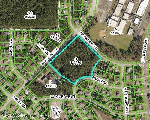 Rare opportunity to acquire 6.5 acres inside Spring Hill proper for large home-site, close to everything! Estate type homesite would be perfect in this location. Opportunity exists for future development for six 1 acre sites with potential for up to 12 individual 1/2 acre homesites. Middle school is close by along with shopping. Road frontage on 3 streets, Freeport, Frost and Moongate. Sewer is on Freeport, water lines on Frost, Freeport and Moongate. Fire Hydrants on Freeport and Frost.